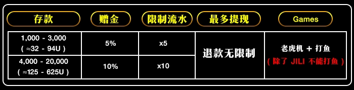 * The deposit amount to get the USDT pro must be played on slots and fish only. *